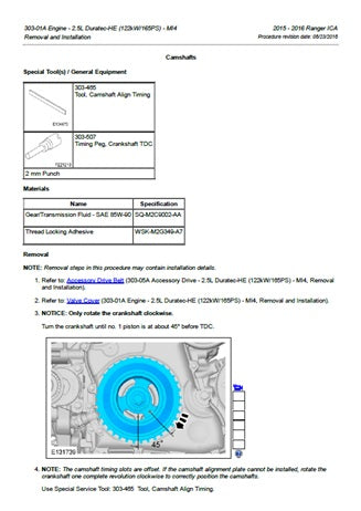 Factory service manual / factory workshop manual for the 2015 to 2018 model year Ford Ranger. This repair manual covers all topics related to servicing, maintenance, general repairs, advanced repairs and rebuild guidelines for engine, gearbox, differential, suspension, steering, brakes, body panels, interior components and electrical systems, including wiring diagrams, troubleshooting and diagnostic advice. A complete repair manual for the Ford Ranger.